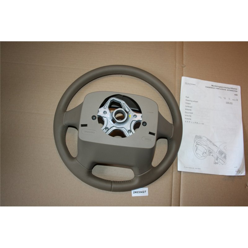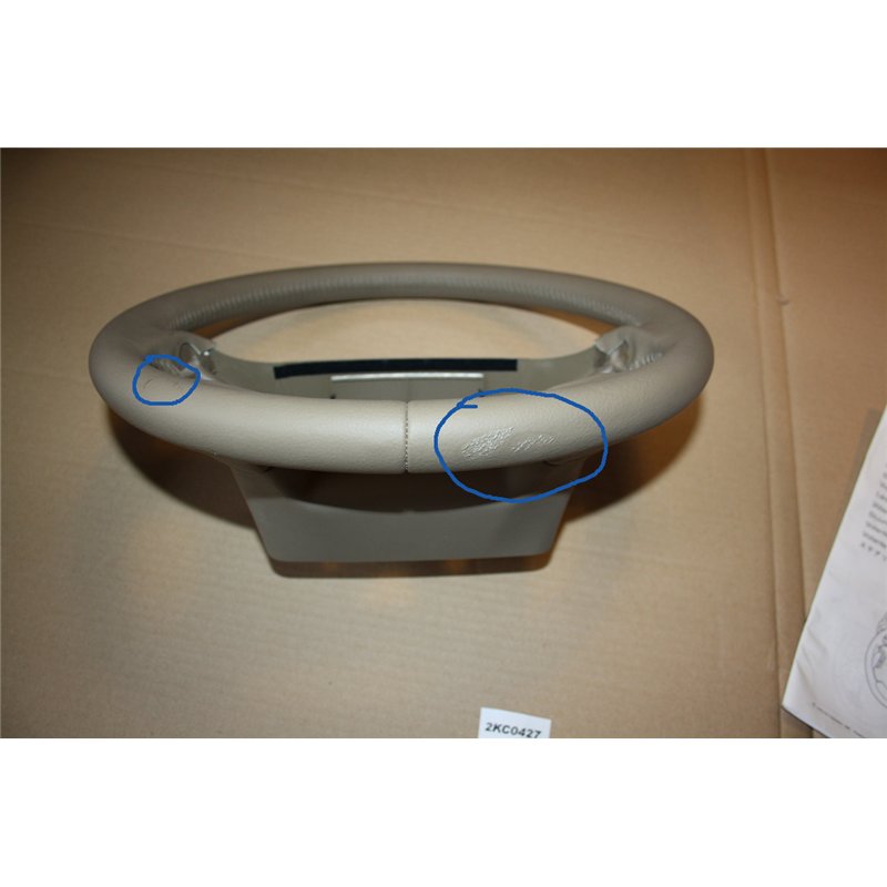 Volvo ratt beige skinn en ytlig defekt i skinnet på undersidan ca Kl 6 och ett mindre hack kl 7. S80 99-06.