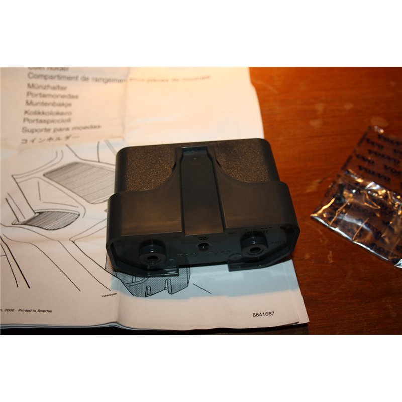 Volvo myntfack i mittkonsolen. Går naturligtvis att montera i andra bilar. S40 V40 00-04.