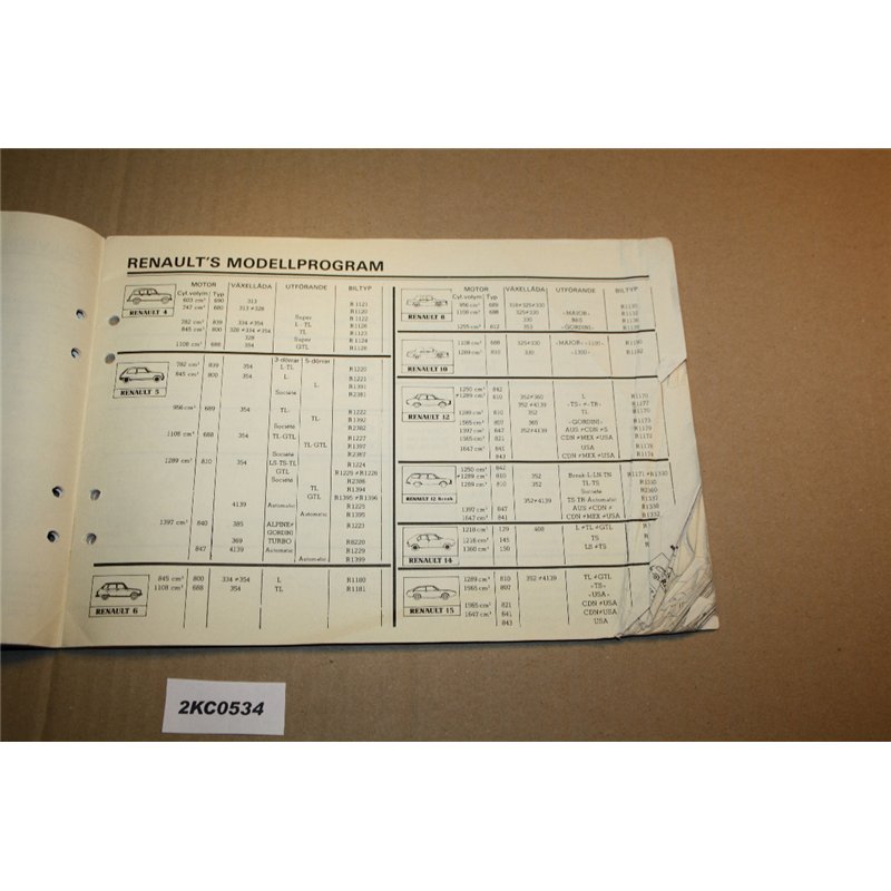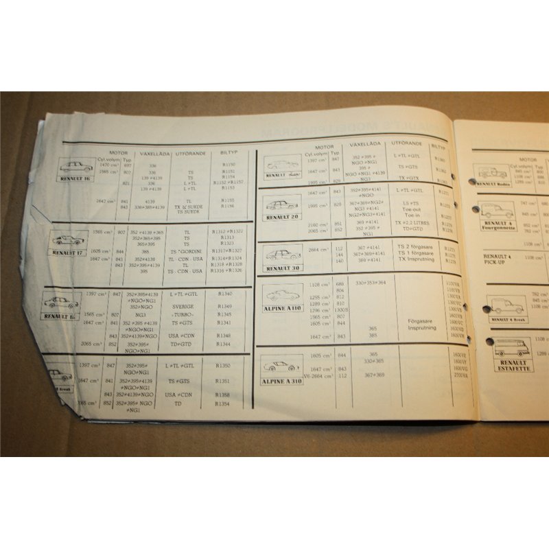 Renault katalog förklaring reservdelar mm. Svensk text.