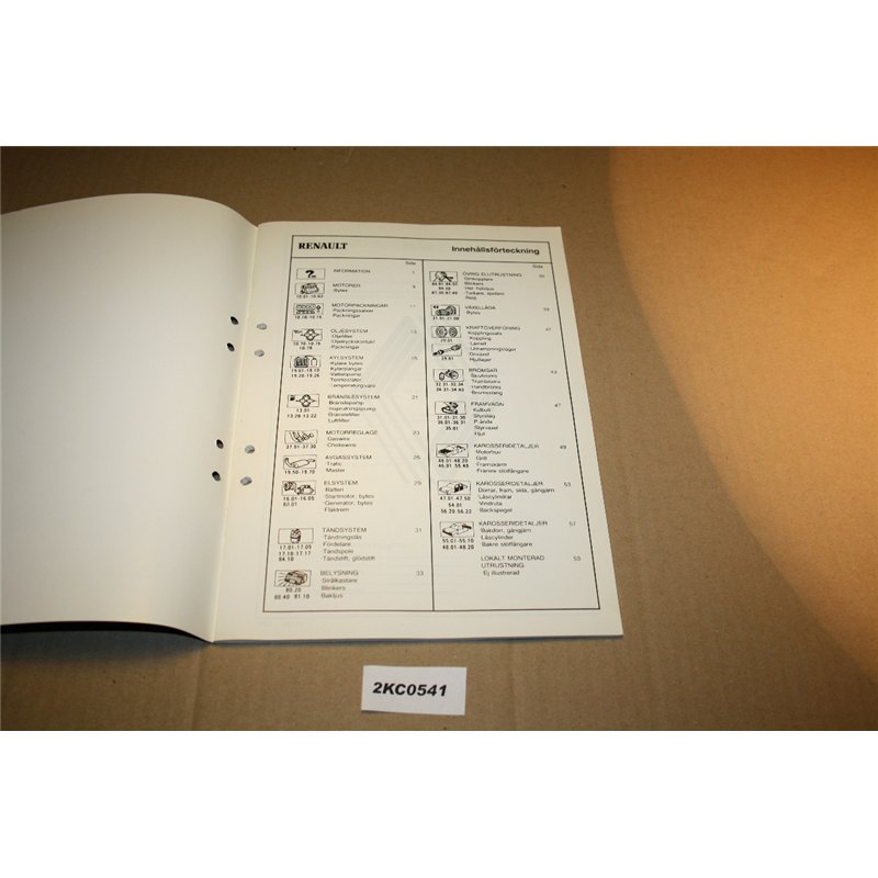 Renault reservdelskatalog med artikelnummer och sprängskisser. Trafic Master 81-89Snabbkatalog på 65 sidor