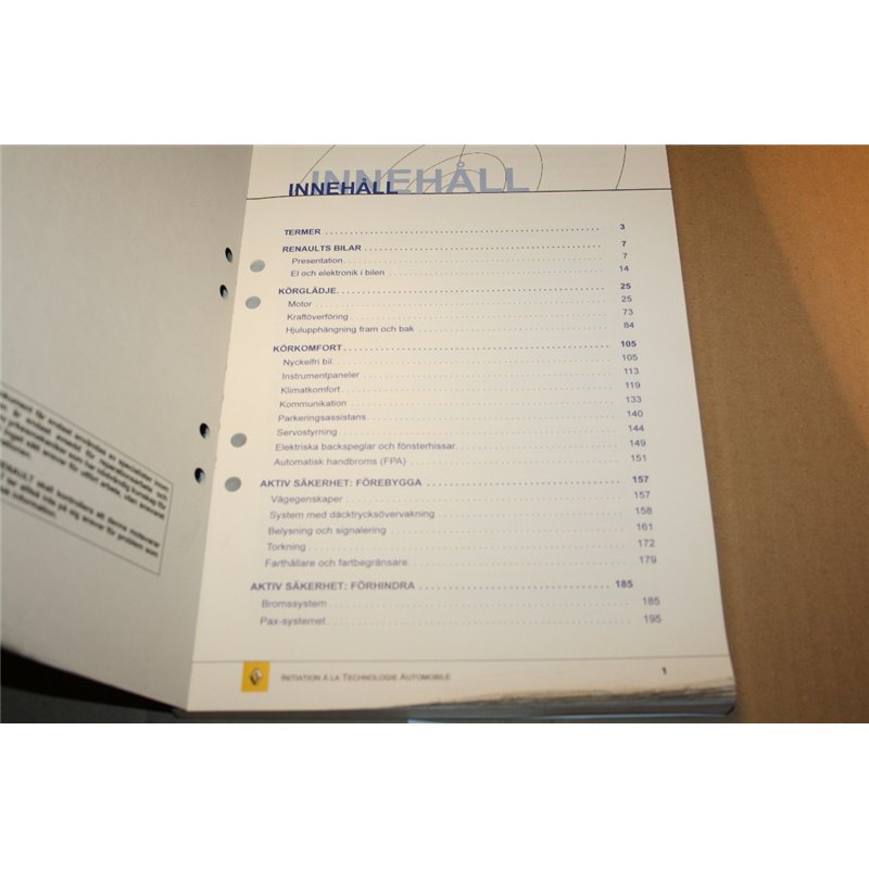 Renault teknisk utbildning. Fordonsteknik enligt Renault.Mekaniska och elektriska delar. 218sidor. Mars 2004