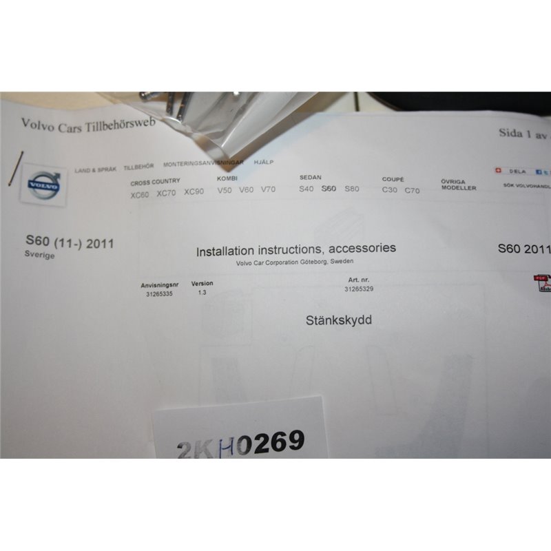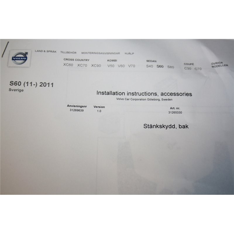 Volvo S60 II 11-17 Stänklappar fram och bak. Skruvar fram medföljer EJ.Kan gå att använda de gamla.